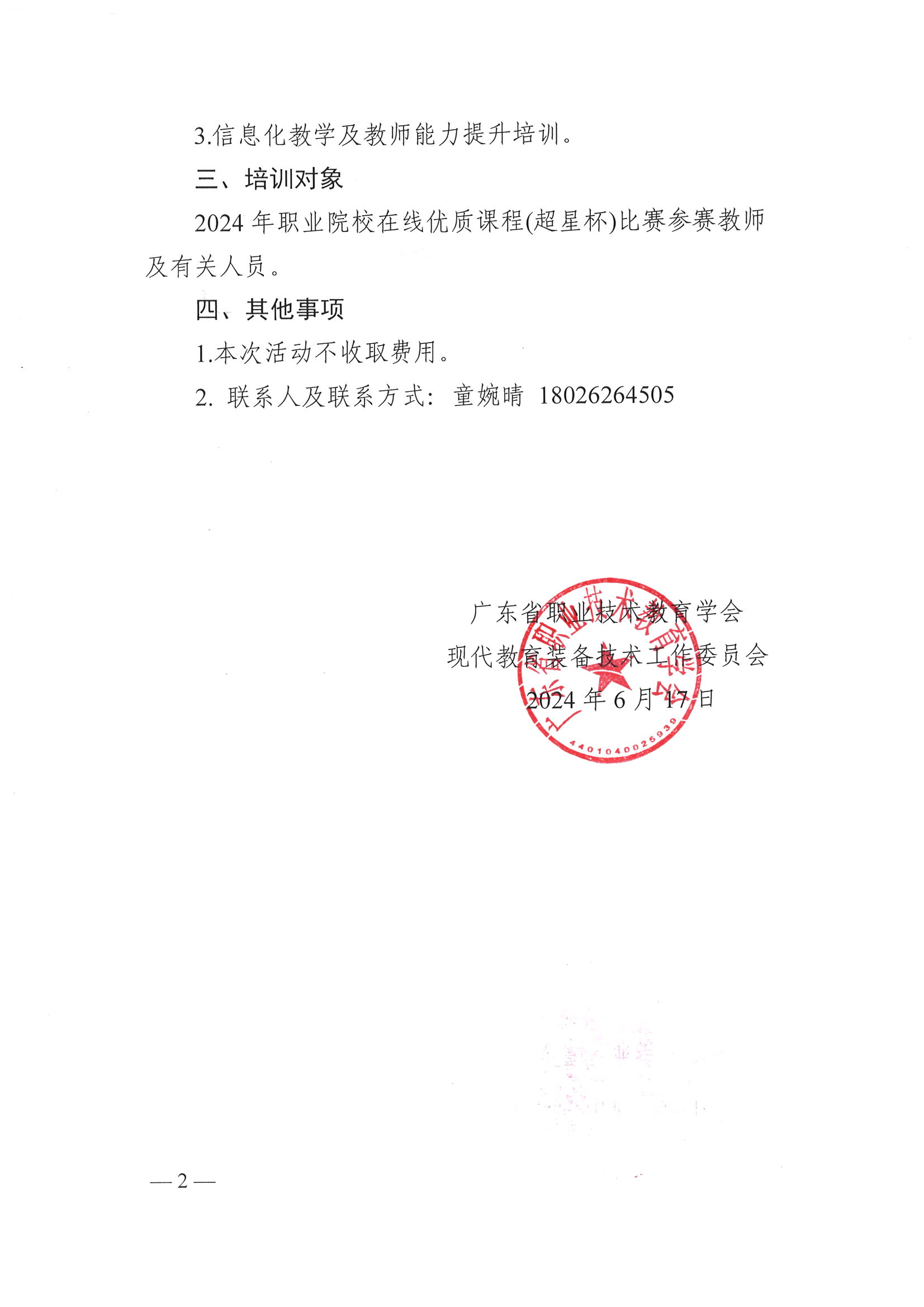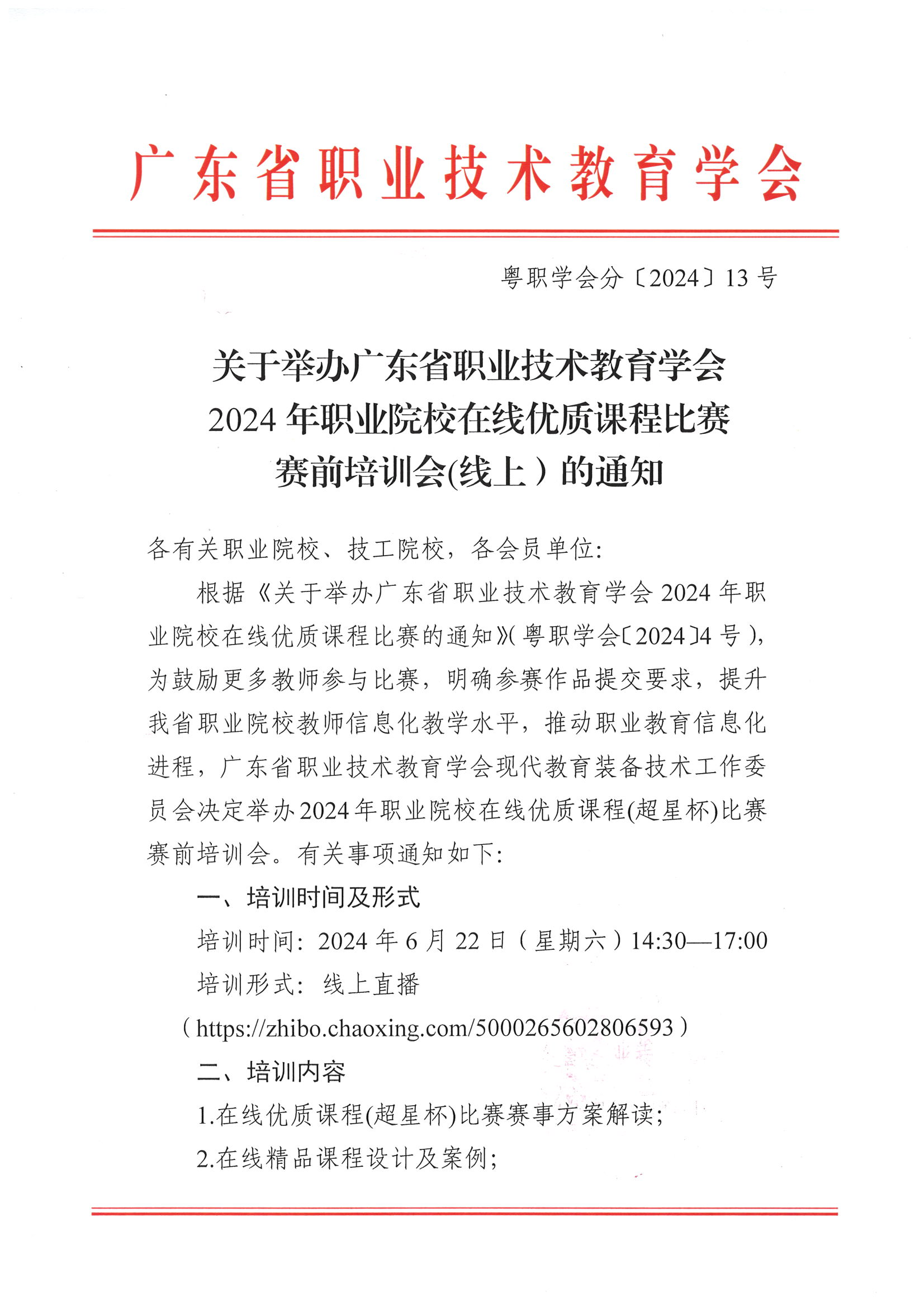 关于举办广东省职业技术教育学会2024年职业院校在线优质课程比赛赛前培训会(线上)的通知