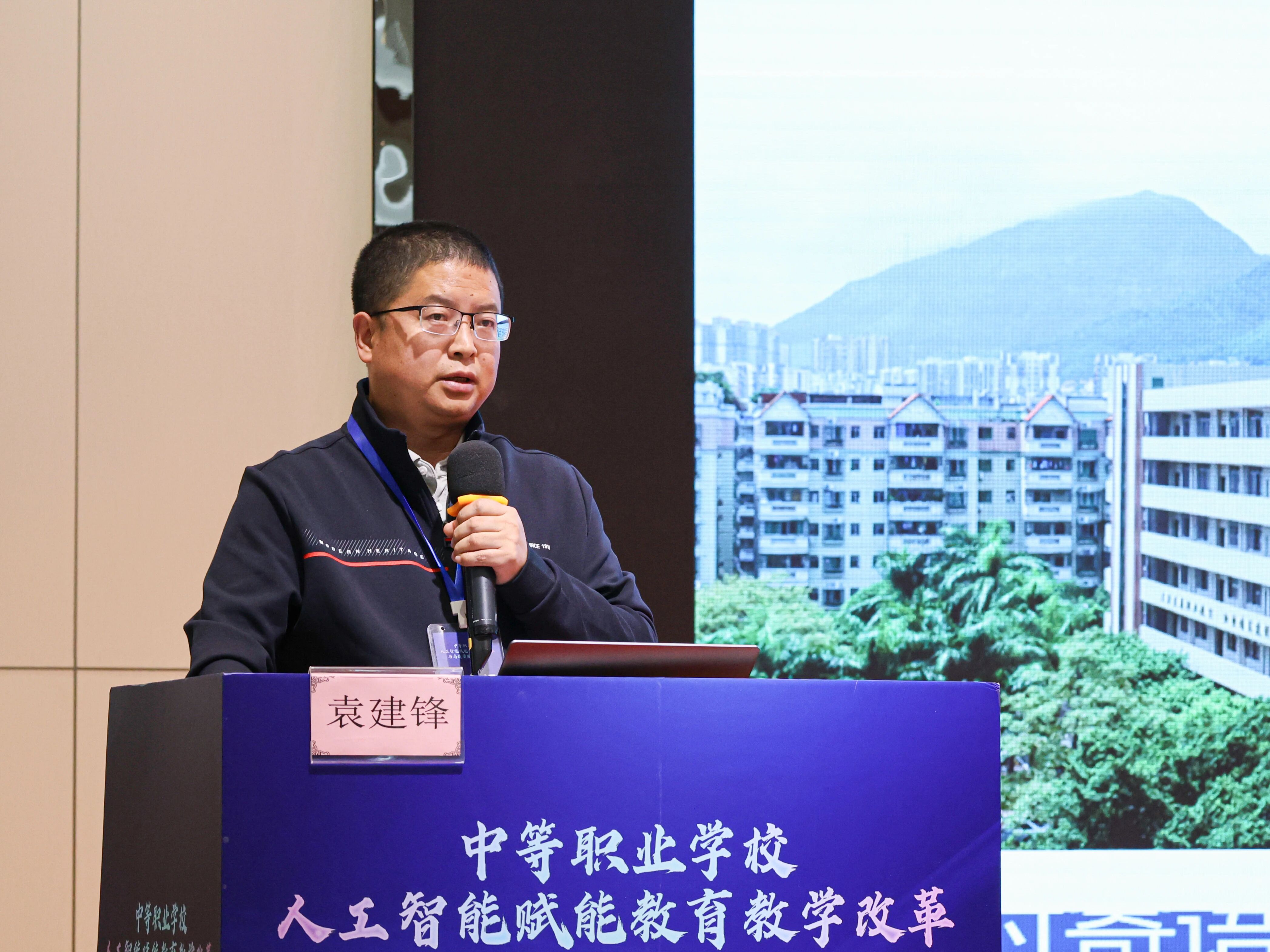 清远市职业技术学校袁建锋副校长带来《人工智能赋能中职教育教学改革的全链条实践》主题报告。清远市职业技术学校以“钉钉+”模式系统推进人工智能技术在全链条教学改革中的应用,通过构建数据大屏实现治理可视化,融入AI工具推动教学精准化,将人工智能技术全链条融入学校治理、教学改革和社会服务中,为中职院校提供了低成本、可复制的数字化转型路径。