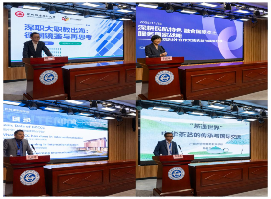 会议还设置了经验分享环节。来自深圳职业技术大学、广州民航职业技术学院、广州城建职业学院、广州市旅游商务职业学校和我校代表,分别从产教融合国际化、行业特色合作模式、校企协同海外布局等维度,展示了各校在国际合作的特色实践与创新思考,为与会人员提供了可借鉴、可推广的实践样本。
